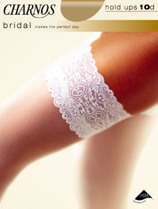 Soft shiny hold ups are topped by a beautiful wide lace top perfect for your wedding day. Colours are either white or a champagne leg with an ivory lace top.